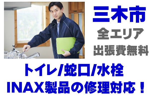 三木市でINAX製品の修理業者をお探しなら当社までお気軽にお問い合わせください。トイレ便器タンクの故障、便座の修理、蛇口やシャワーの水漏れなどイナックス製品に関するトラブルなら何でもご相談ください。